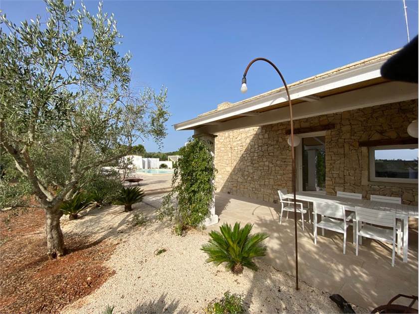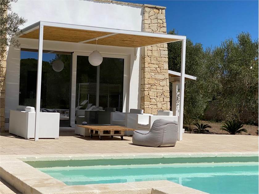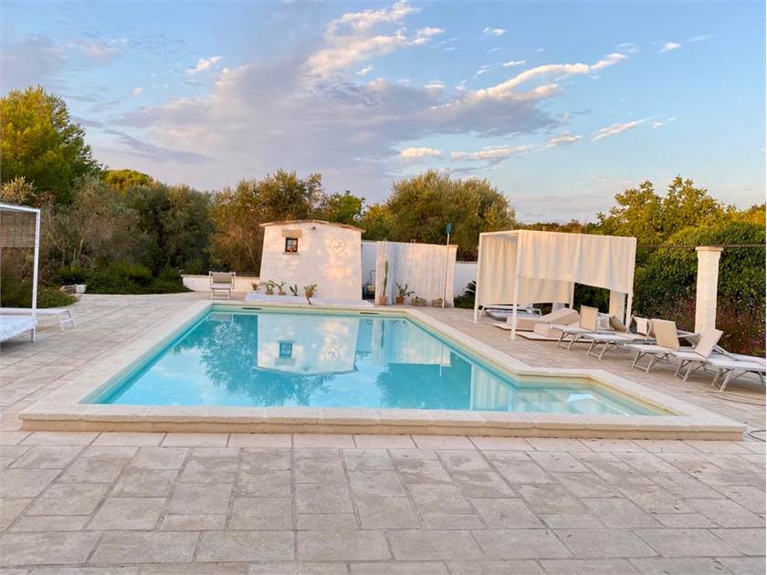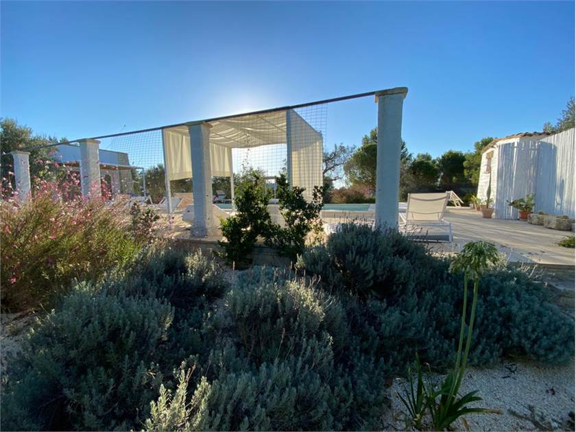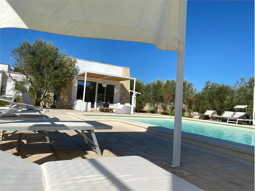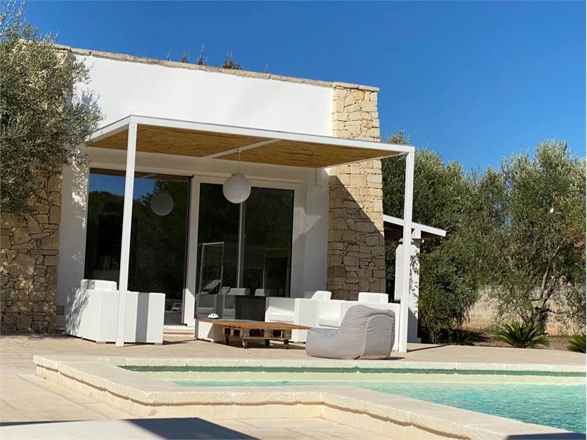Fiore all'occhiello della proprietà è la **piscina**, che può essere anche ad **uso esclusivo** per garantire la massima privacy. È completamente attrezzata con docce esterne, un bagno dedicato, gazebi, lettini confortevoli e cuscineria, creando un vero e proprio solarium privato dove potervi rilassare sotto il caldo sole salentino.