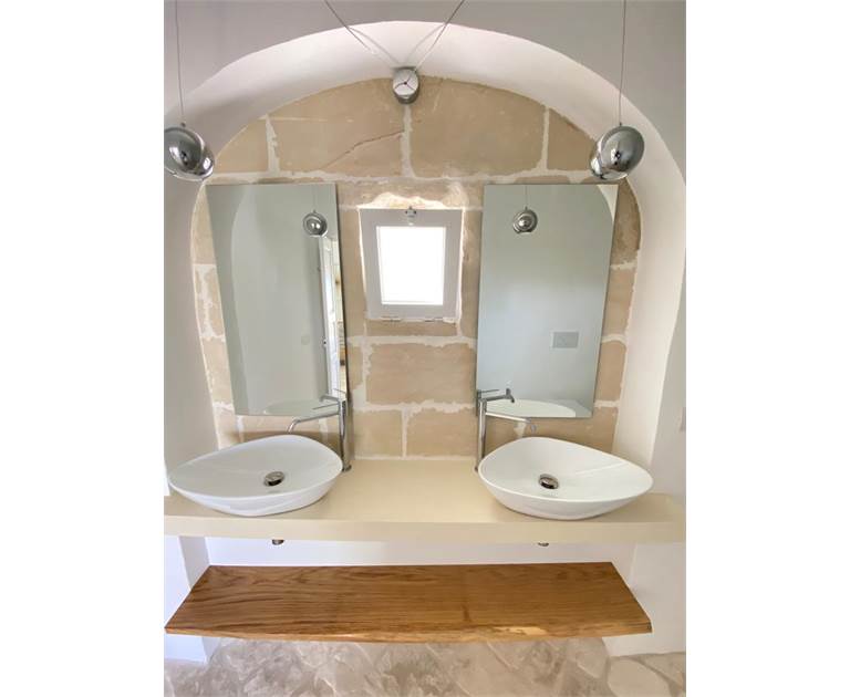* Un **bagno moderno** con doppio lavabo e doccia spaziosa, per coccolarvi con momenti di puro benessere.